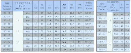 普利卡直接頭連接器KS規(guī)格表