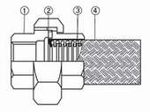 結(jié)構(gòu):外螺紋接頭波紋管 特點(diǎn):結(jié)構(gòu)簡(jiǎn)單,通用性好 材料: (1)外螺紋接頭:不銹鋼; (2)網(wǎng)套緊環(huán):不銹鋼; (3)金屬波管:SUS301/304; (4)網(wǎng)套:SUS301/304 |